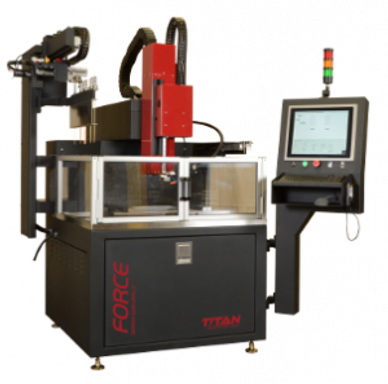 The Titan Force 30 is a full featured CNC small hole EDM drill. This powerful CNC control offers standard G&M code programming along with canned cycles for easy programming.