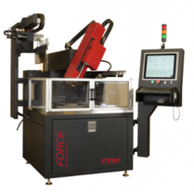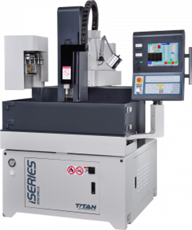 Titan International Sales Force 30 CNC small hole EDM drill with 10 hour unattended run time. The Titan Force 30 5-Axis driller features a robust CNC control and offers standard G&M code programming along with canned cycles for easy programming.